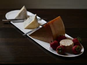 Photography, according to my mentor Arnold Newman, is 1% inspiration and 99% moving furniture. In the restaurant, I moved a dark wood table in front of the wall of white subway tiles and set my light to give a strong back light from the left side. I set up two cameras: one to give an overhead view looking straight down so you can see the ‘plating’ of the food, and the other for a front view to make the finished meal inviting and interesting.