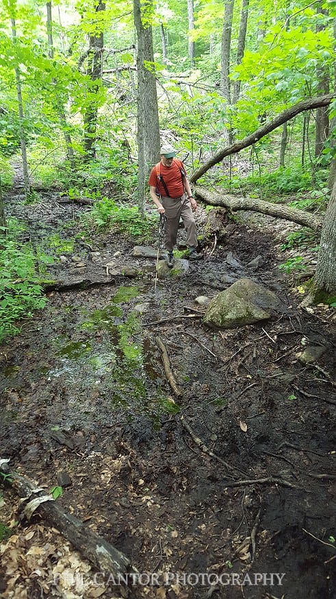 The week preceding my arrival it had rained everyday. The woods were wet and the trails muddy. Over the succeeding days, the area dried out, but every night my boots needed a thorough cleaning and drying.